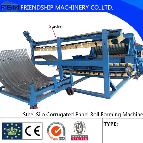 The machine makes steel silo with five forming steps and then steel bended procedures with